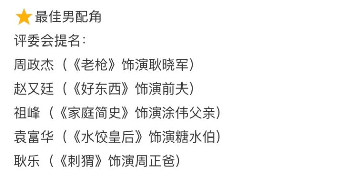 最佳男主竞争力平平还有五位入围的最佳男配吸引目光。